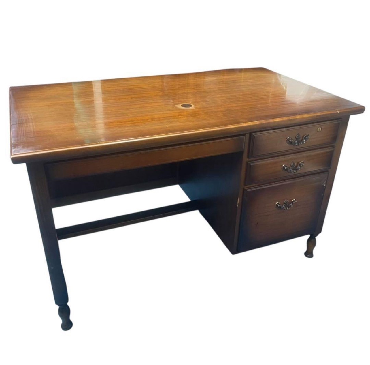 オールドカリモク コロニアルシリーズ グリーンベルベット風回転デスクチェア